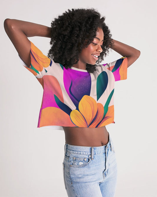 Magic Garden Twist-Front Cropped T-Shirt