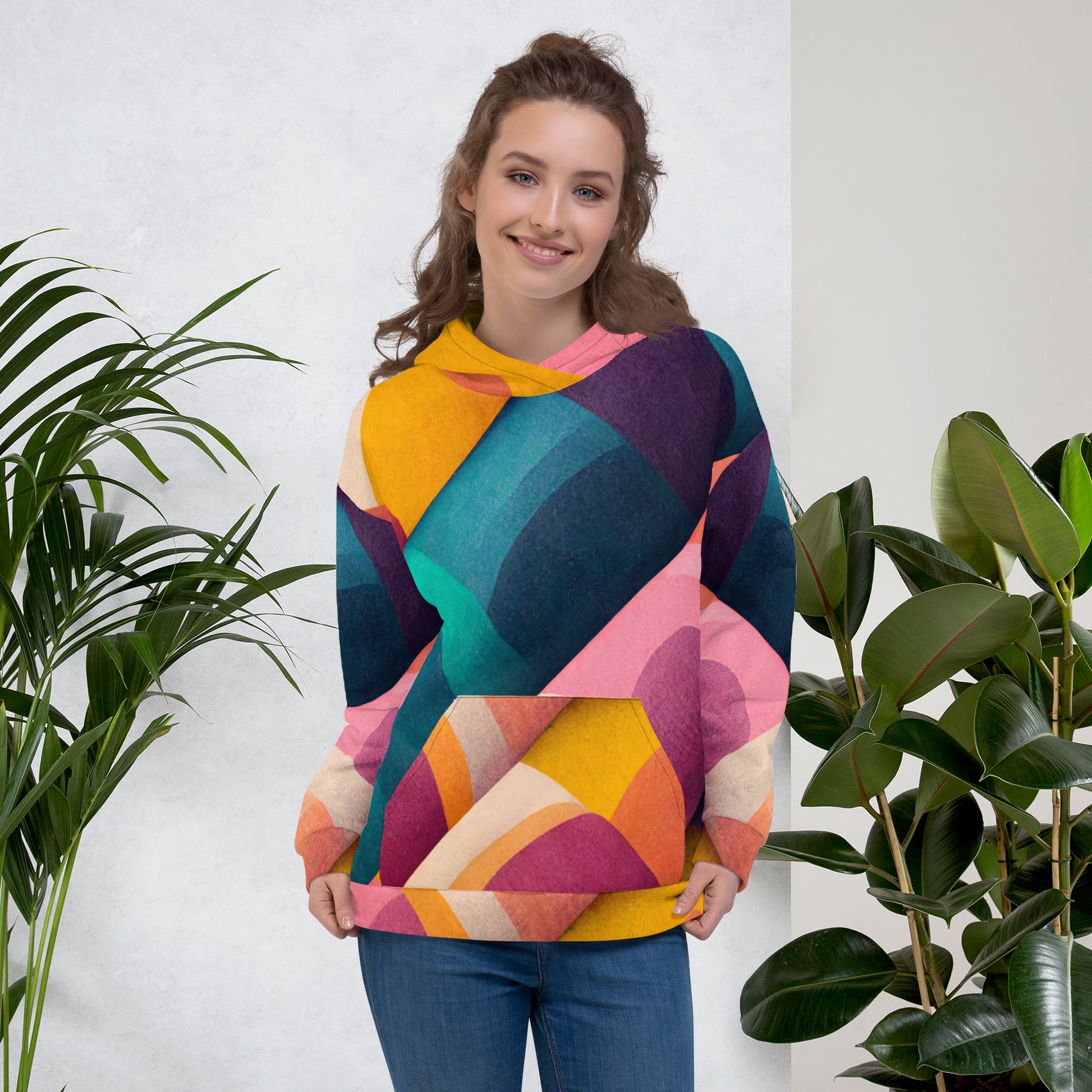 This comfy hoodie has a soft outside with a vibrant print and an even softer brushed fleece inside. The hoodie has a relaxed fit, and it's perfect for wrapping yourself into on a chilly evening and also to add some style to your outfit.
