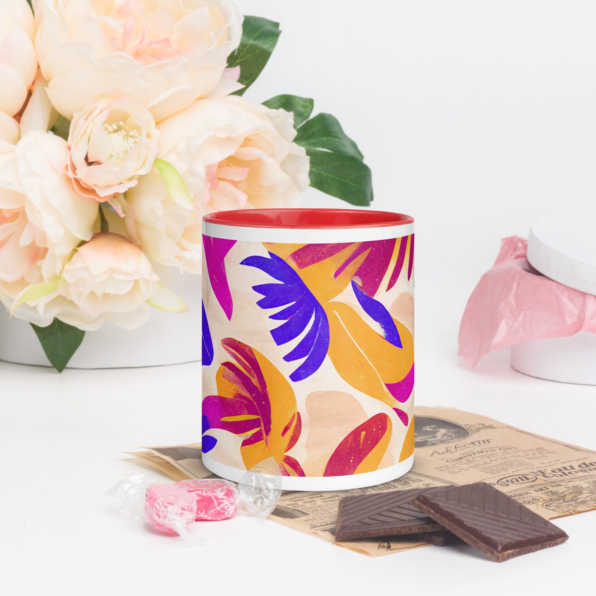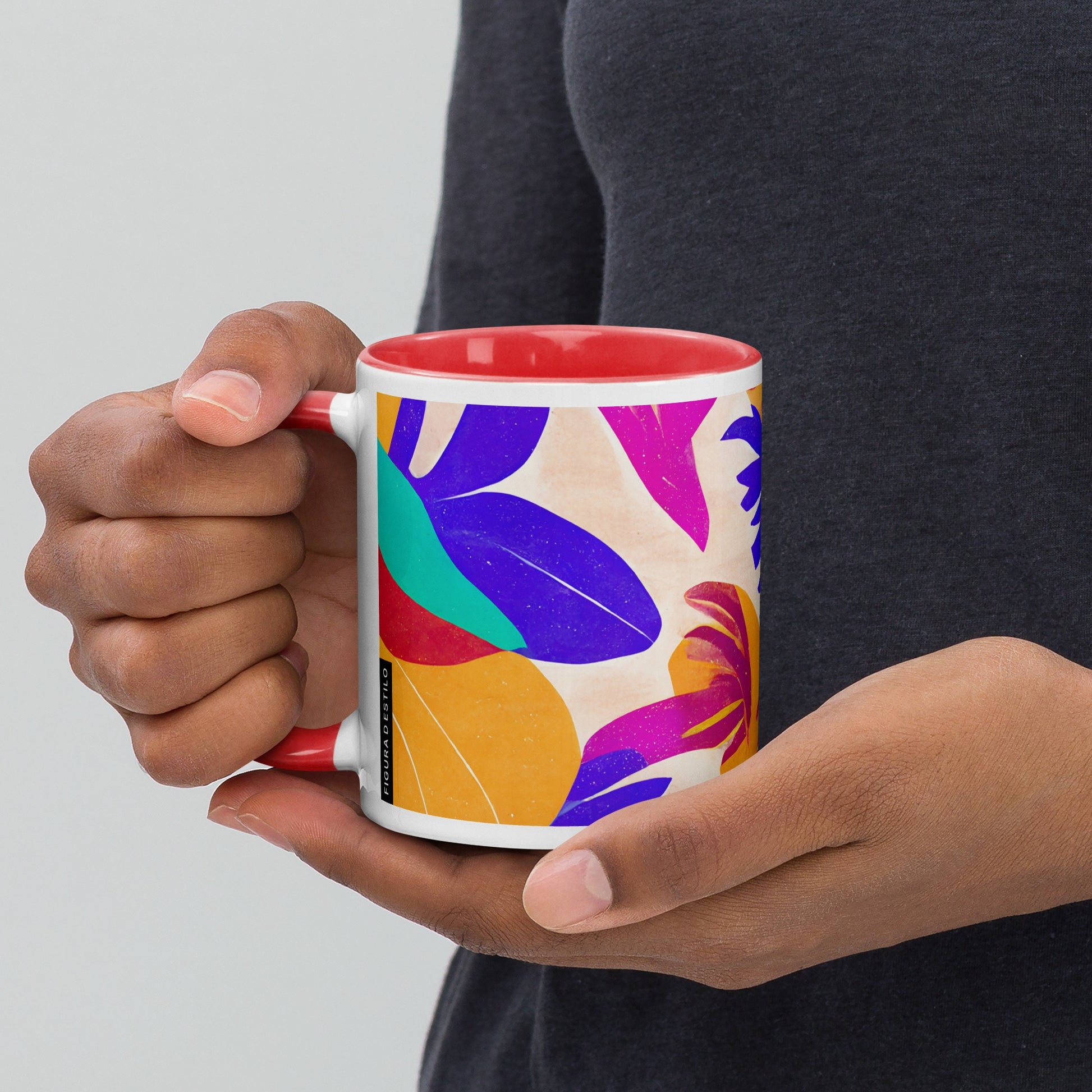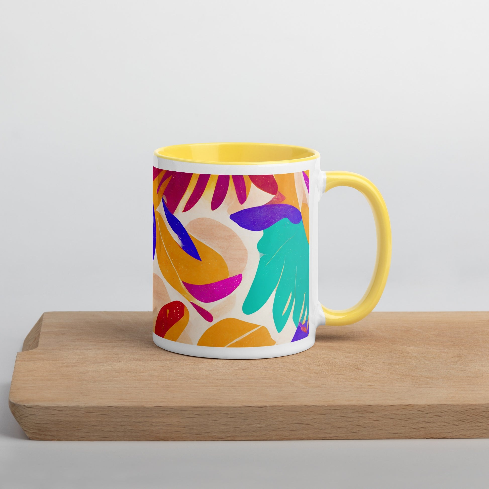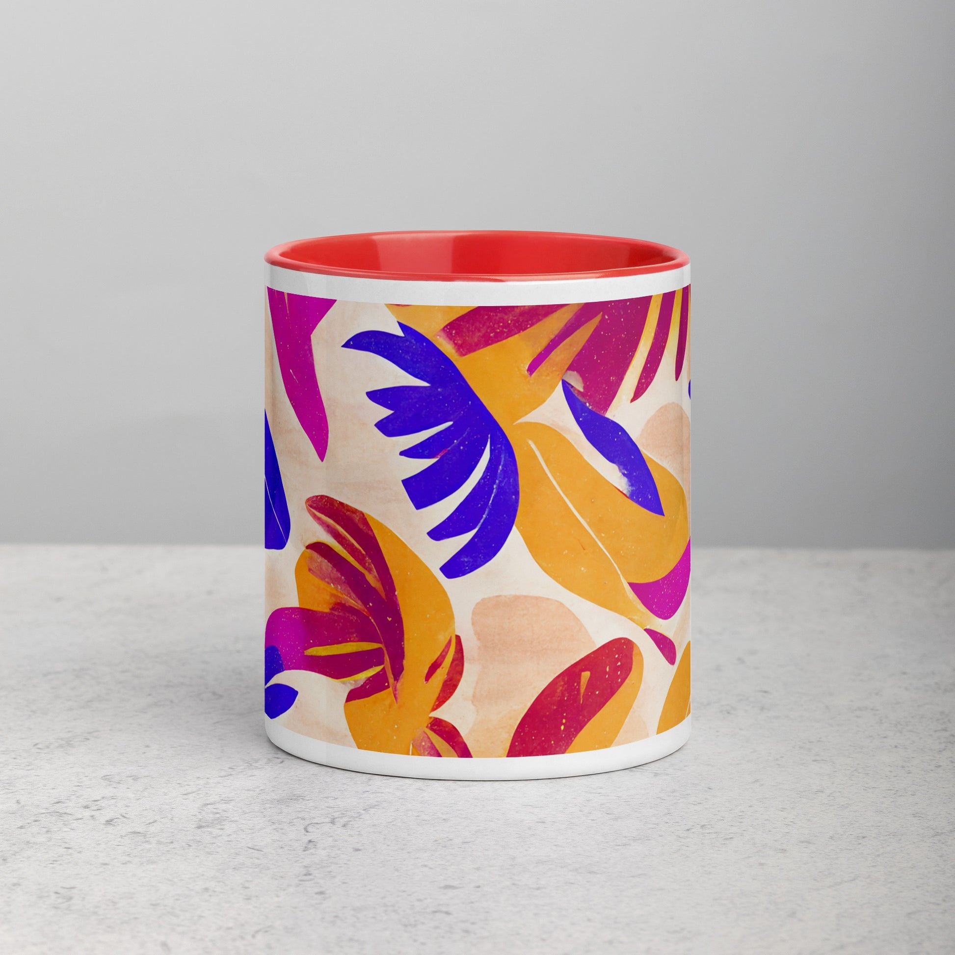 Add a splash of color to your morning coffee or tea ritual! This ceramic mug not only has a beautiful design on it, but also a colorful rim, handle, and inside, so the mug is bound to spice up your mug rack.