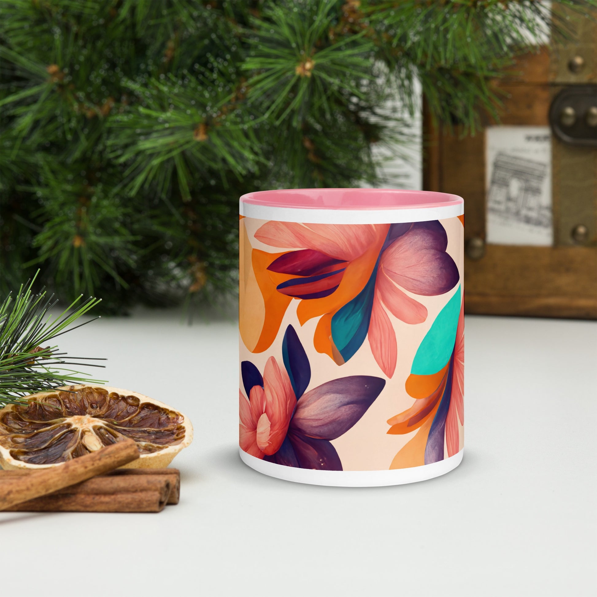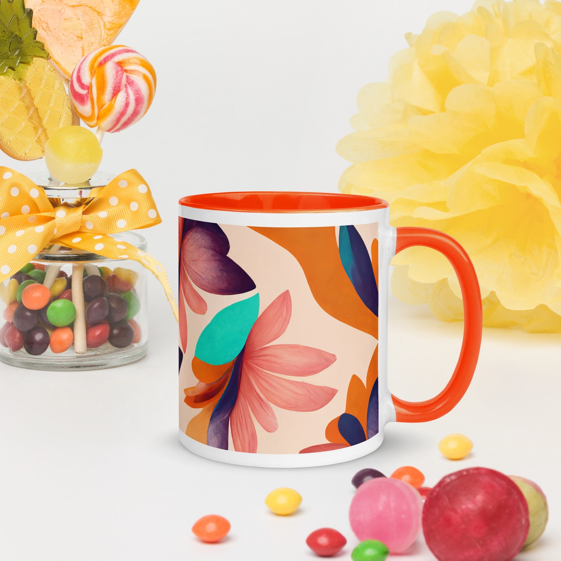 Add a splash of color to your morning coffee or tea ritual! This ceramic mug not only has a beautiful design on it, but also a colorful rim, handle, and inside, so the mug is bound to spice up your mug rack.