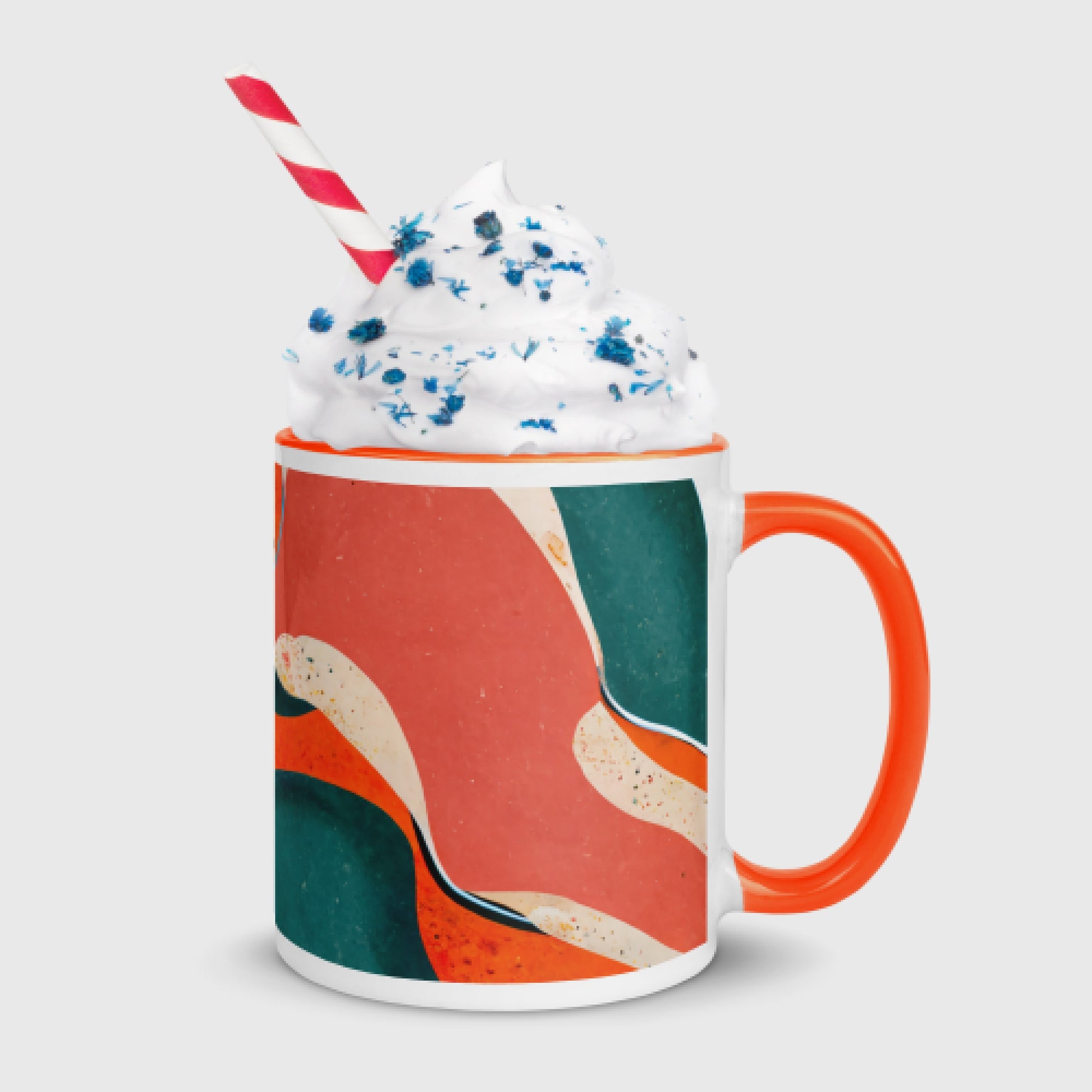 Add a splash of color to your morning coffee or tea ritual! This ceramic mug not only has a beautiful design on it, but also a colorful rim, handle, and inside, so the mug is bound to spice up your mug rack.