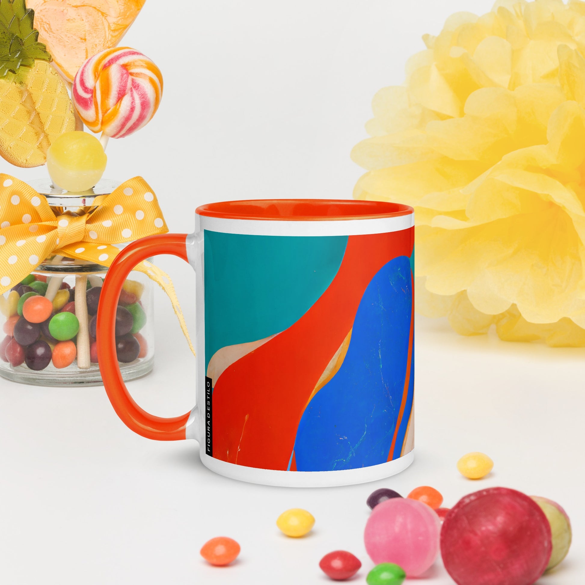 Add a splash of color to your morning coffee or tea ritual! This ceramic mug not only has a beautiful design on it, but also a colorful rim, handle, and inside, so the mug is bound to spice up your mug rack.