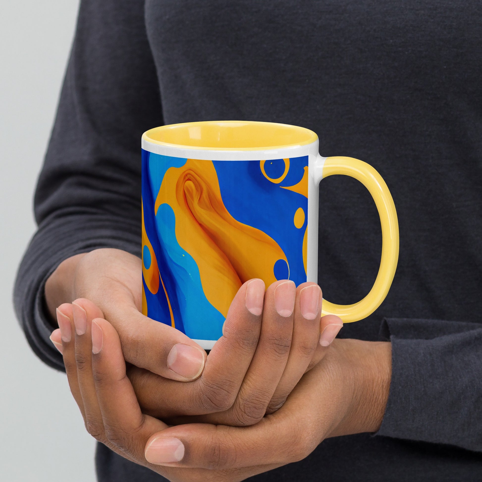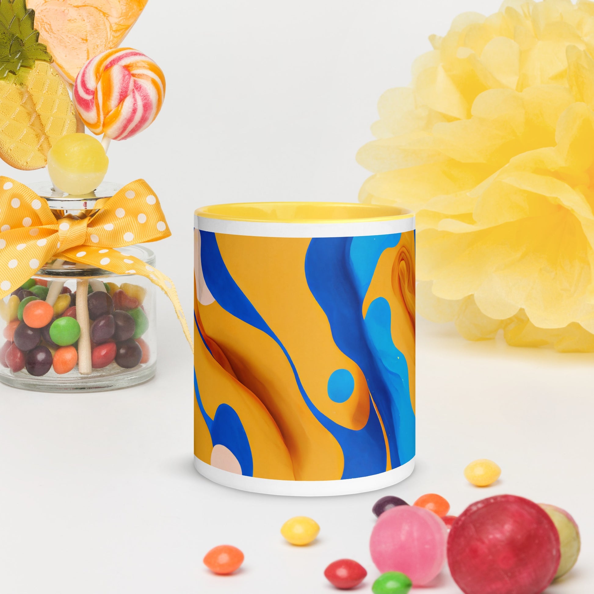 Add a splash of color to your morning coffee or tea ritual! This ceramic mug not only has a beautiful design on it, but also a colorful rim, handle, and inside, so the mug is bound to spice up your mug rack.