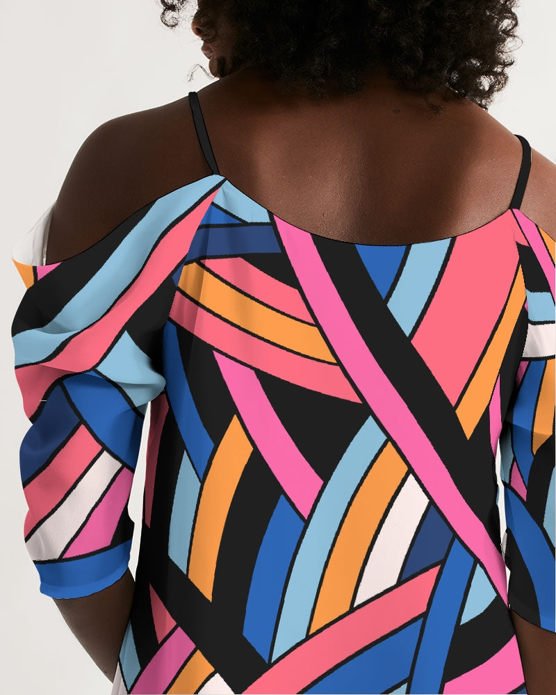 Glamoroso e divertido com um mini corte, este vestido assenta bem em qualquer corpo. Mangas curtas e drapeadas fluem do decote aberto do ombro para um toque extra de classe.