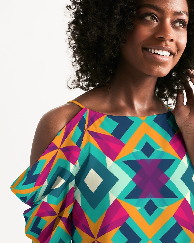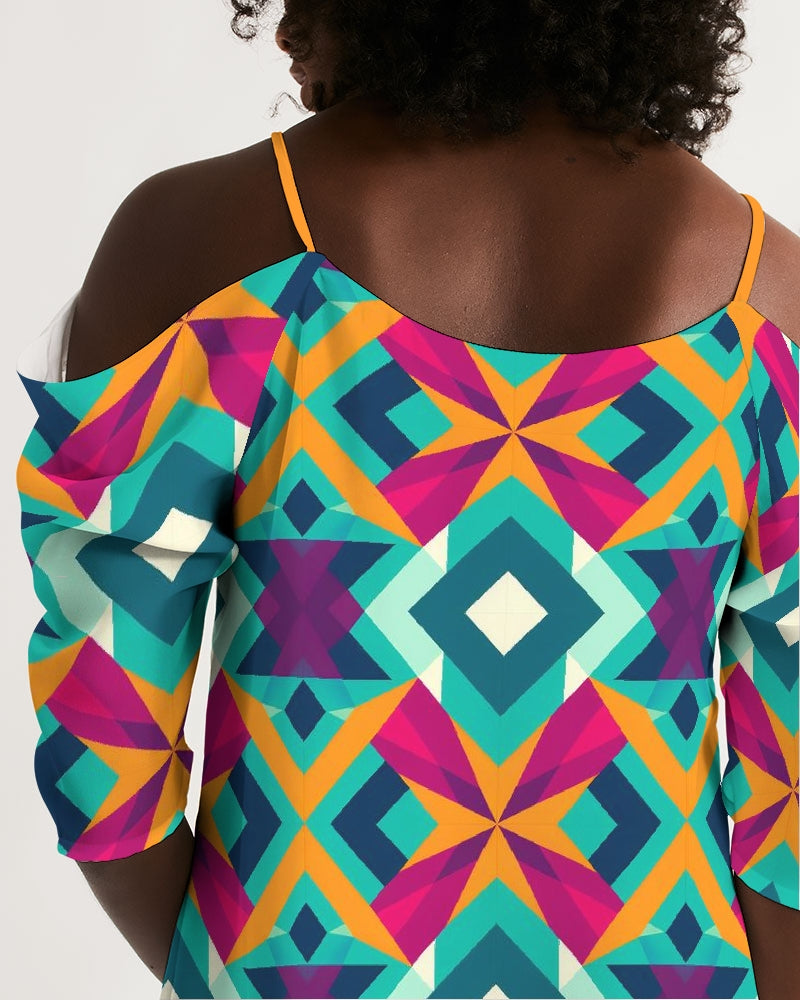 Glamoroso e divertido com um mini corte, este vestido assenta bem em qualquer corpo. Mangas curtas e drapeadas fluem do decote aberto do ombro para um toque extra de classe.