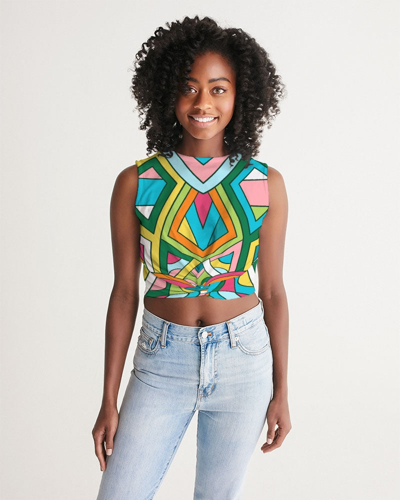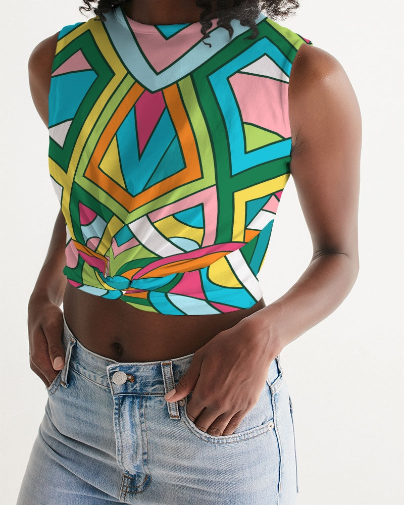 Uma t-shirt de manga cava com um pormenor torcido que tanto podes levar para uma aula de yoga ou usar num estilo casual. É feita de material polimisturado macio e respirável para lhe dar estilo, mas com um toque aprimorado.